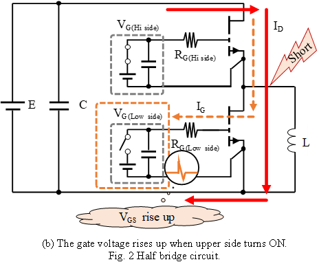 本論文では、GaN HEMTの誤オン(一部で誤点弧とも呼ばれる)と呼ばれる現象により、ハーフブリッジのハードウェア方式において、上下アーム短絡を起し、パワー半導体や基板が破壊されてしまう事象について解説しています。